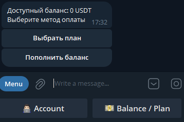 You can top up your balance and choose a plan directly within the bot interface by entering the /profile command.
