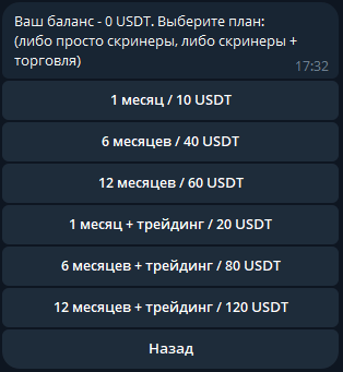 Upon starting the bot, you can purchase the following subscriptions:
